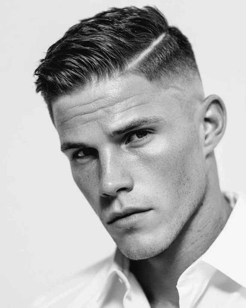 The buzz cut fade takes the ultra-short classic and sharpens it with clean blended sides. The fade adds shape so your head doesn’t look flat or boxy. It shows off jawlines, cheekbones, and solid structure. Sweat, heat, and bad hair days stop being a problem. It works especially well for thick hair and active lifestyles. If you want zero maintenance with maximum sharpness, this is it.