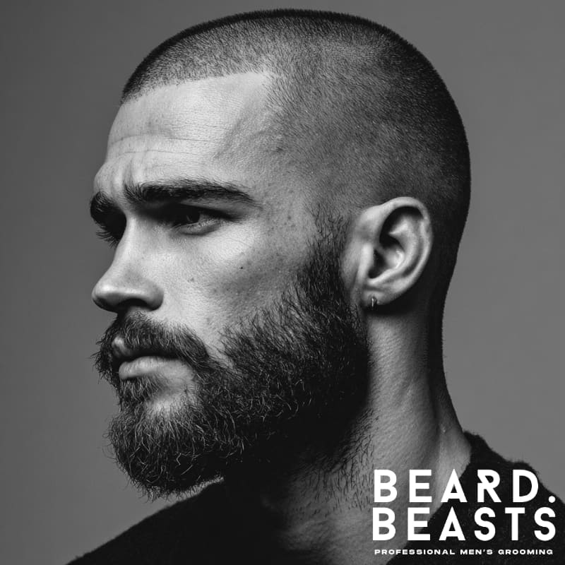 Paired with a well-groomed beard, this style enhances the overall appearance, adding a rugged, masculine edge. It’s a strong, balanced look, perfect for those who want a clean-cut style with added facial hair.