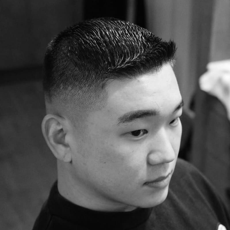 The induction buzz cut is the shortest version of a buzz cut, featuring a uniform, ultra-short length. This cut is ideal for Asian men who want a no-maintenance, clean, and rugged look.
